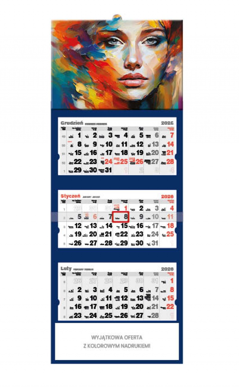 KALENDARZ TRÓJDZIELNY "ART" 2026 WYMIAR KALENDARZA 32 x 85,5cm   MIEJSCE NA NADRUK 30 x 9 cm   WYMIAR ZDJĘCIA 32 x 22 cm...