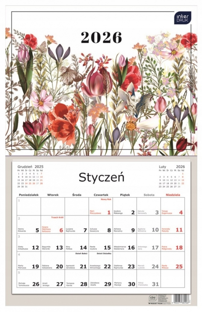 • Kalendarz jednodzielny 32x50cm Kwiaty 2026