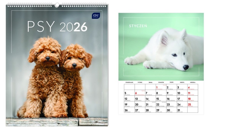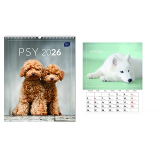 Kalendarz ścien.plansz.33,5x40cm Psy 2026, Ścienne, Kalendarze