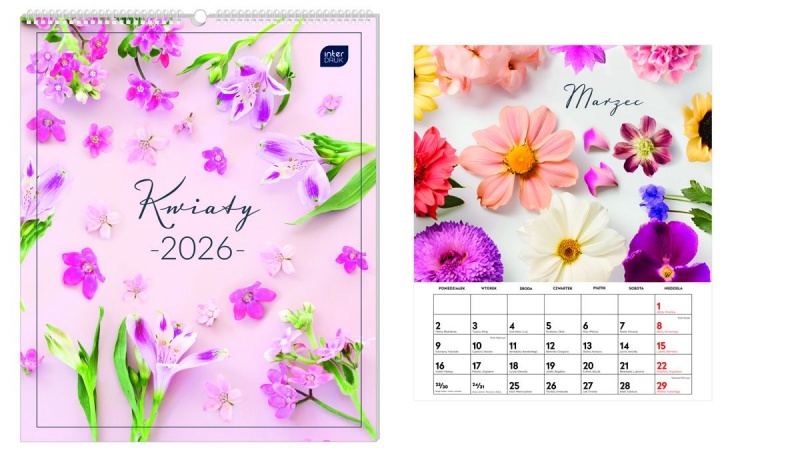 Kalendarz ścien.plan.33,5x40cm Kwiaty 2026, Ścienne, Kalendarze
