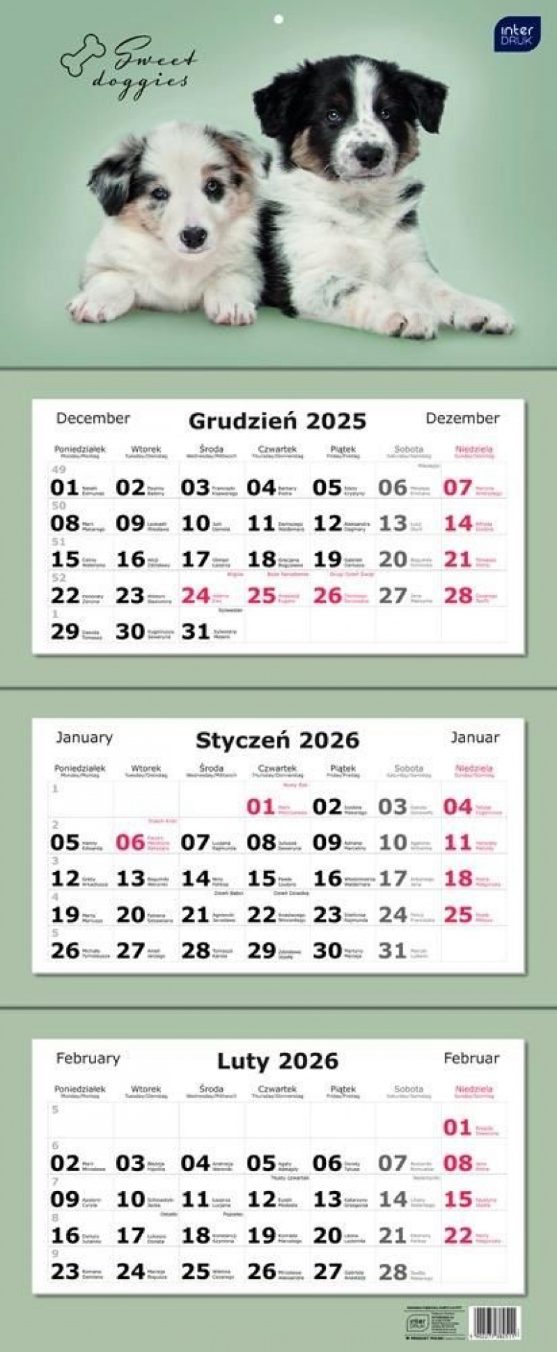 • Kalendarz trójdzielny 82,5x34cm Psy 2026