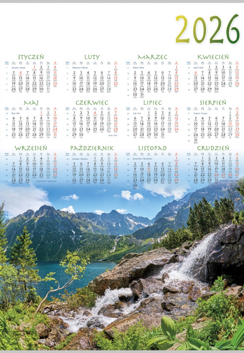KALENDARZ JEDNOPLANSZOWY A1 PL01 SZCZYTY 2026 Specyfikacja kalendarzy plakatowych PL-A1 format kalendarza 60,7 x 88 cm; kalendarze...