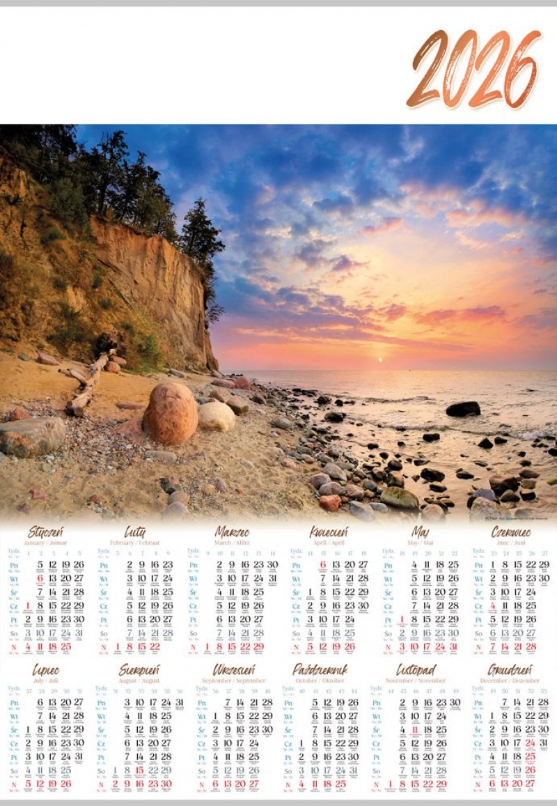 KALENDARZ JEDNOPLANSZOWY A1 PL02 KLIF 2026 Specyfikacja kalendarzy plakatowych PL-A1 format kalendarza 60,7 x 88 cm; kalendarze ścienne,...
