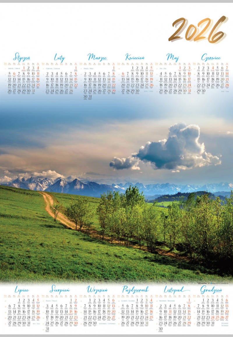 KALENDARZ JEDNOPLANSZOWY A1 PL03 PANORAMA 2026 Specyfikacja kalendarzy plakatowych PL-A1 format kalendarza 60,7 x 88 cm; kalendarze...