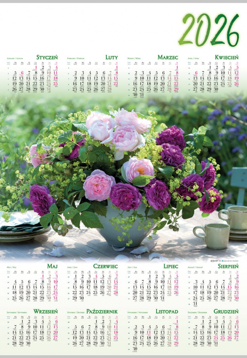 KALENDARZ JEDNOPLANSZOWY A1 PL14 BUKIET 2026 Specyfikacja kalendarzy plakatowych PL-A1 format kalendarza 60,7 x 88 cm; kalendarze...