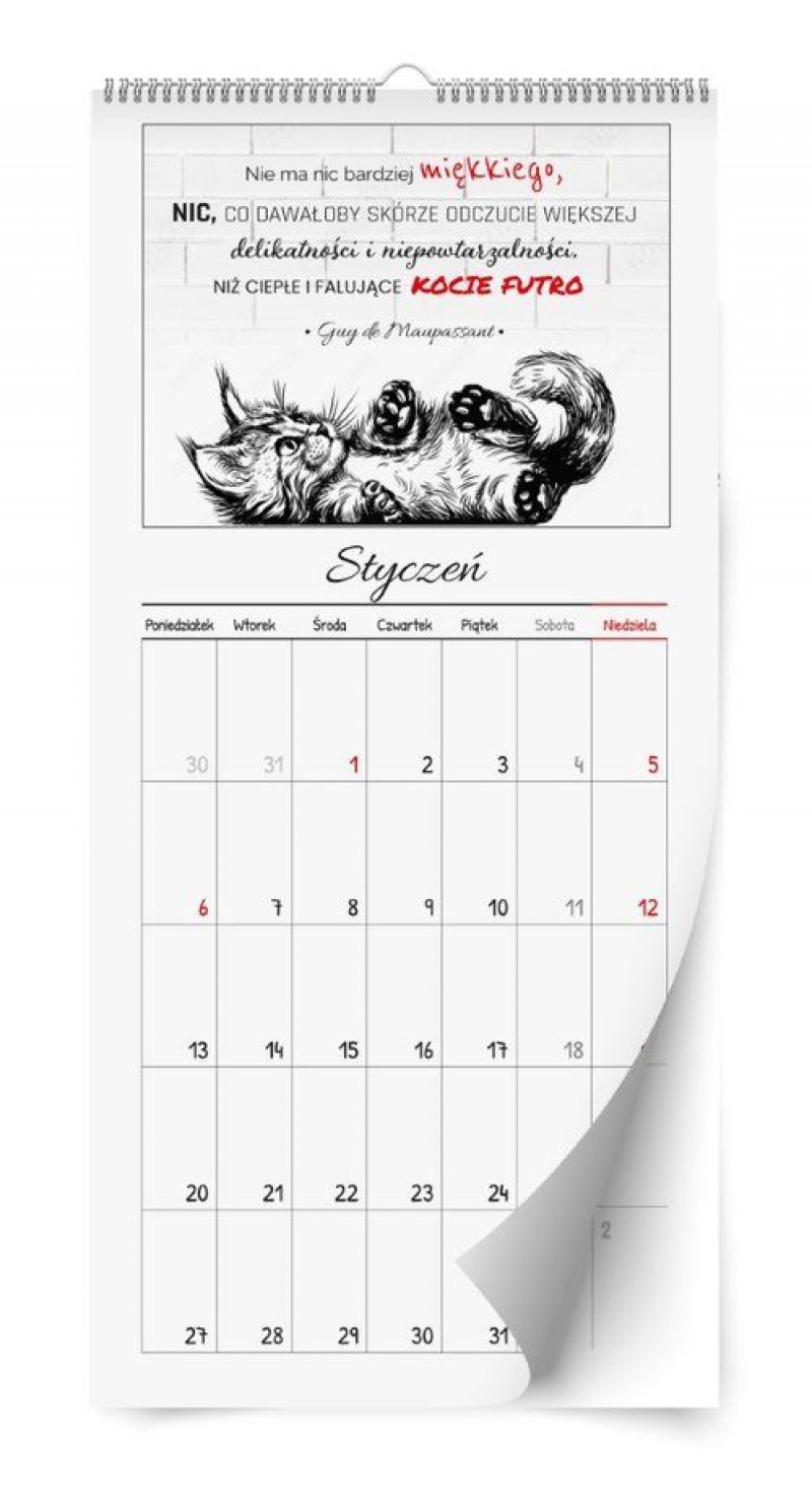Kalendarz ścienny, miesięczny na spirali, w formie planera.12 kart z miejscem na notatki i cytatami sławnych ludzi.