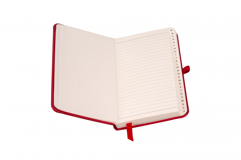 SKOROWIDZ A6 CZERWONY gramatura: 80 g, liczba stron: 208 ( po 4 strony na 1 literkę), okładka: twarda, materiał: skóra ekologiczna, wymiary:...