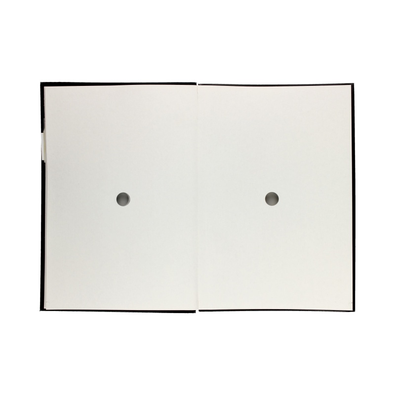 Kartki wewnętrzne kartonowe białe z dziurkami w celu pokazania zawartości teczki.