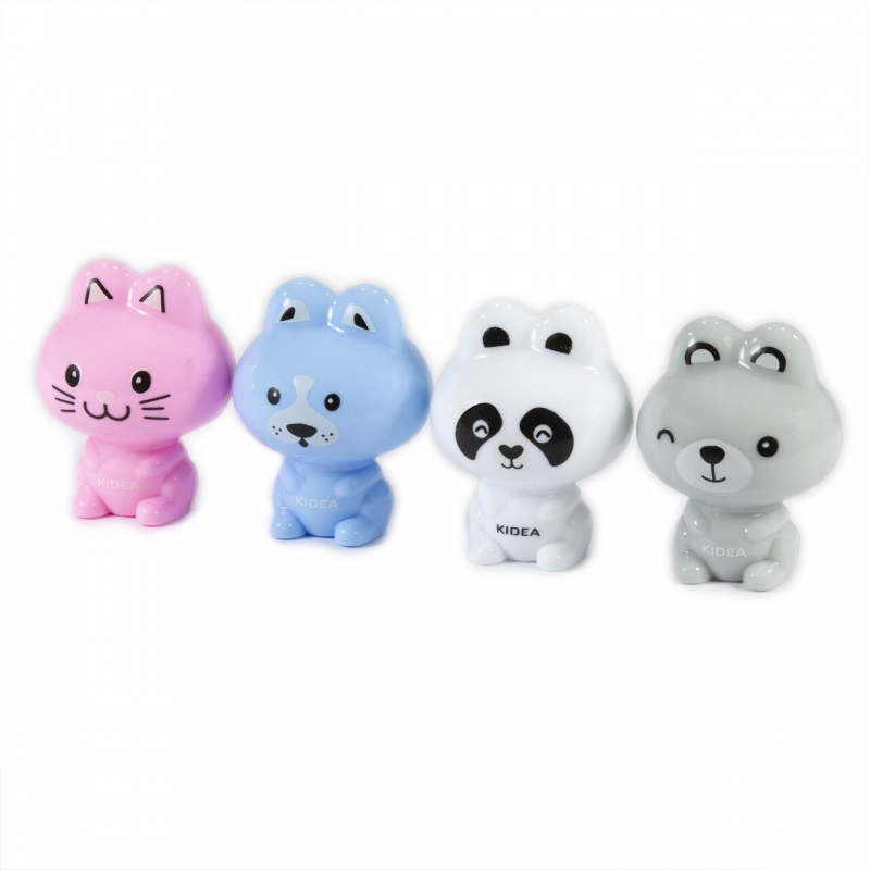 • Temperówka z pojemniczkiem w kształcie uroczych zwierzaków. Panda, kotek, piesek i miś w czterech różnych kolorach białym, różowym, niebieskim i szarym idealnie sprawdzą się w szkole i przedszkolu, ale także podczas kreatywnych zabaw w domu.