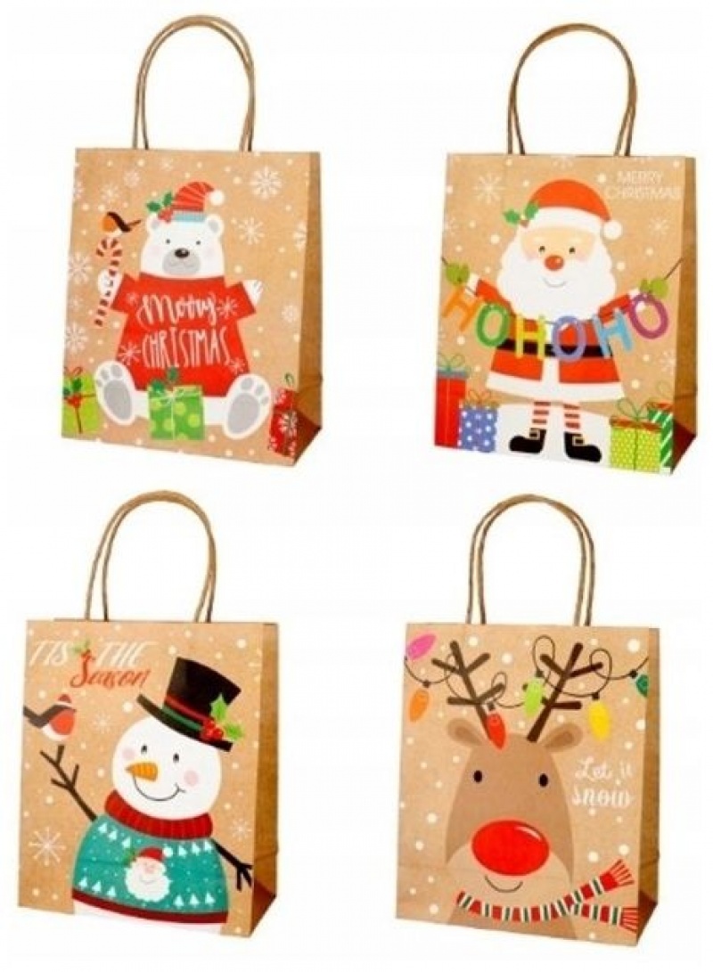 TORBA PREZENTOWA 21X25 BAŁWAN, RENIFER, NAPISY Torba prezentowa wymiar 21X25 CM   zestaw eleganckich toreb prezentowych wykonane z...