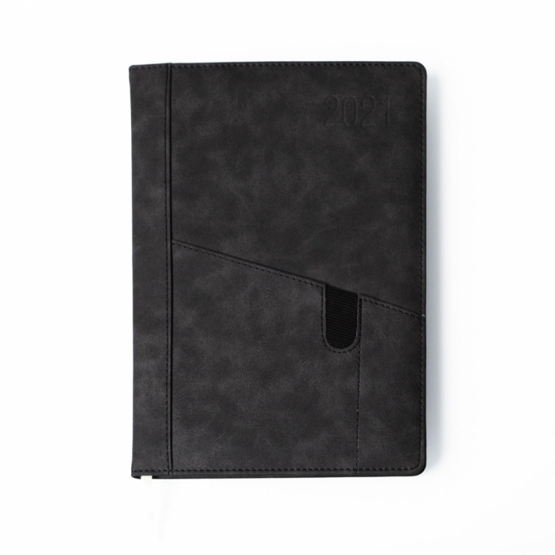 Kalendarz, terminarz biurowy twardy z miejscem na smartfon i długopis.