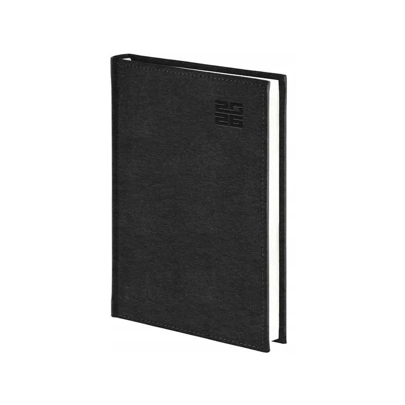 KALENDARZ ALUMINIUM STANDARD A4 TYGODN.CZARNY 2026 Kalendarz drukowany na białym papierze; bloki terminarza szyte nićmi; kapitałka i tasiemka...