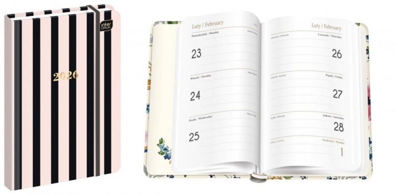KALENDARZ A6 TYGODNIOWY METALL.STRIPES 2026 Cechy: kalendarium: 1 tydzie ń na dw óch stronach miejsce na notatki przy ka żdym...