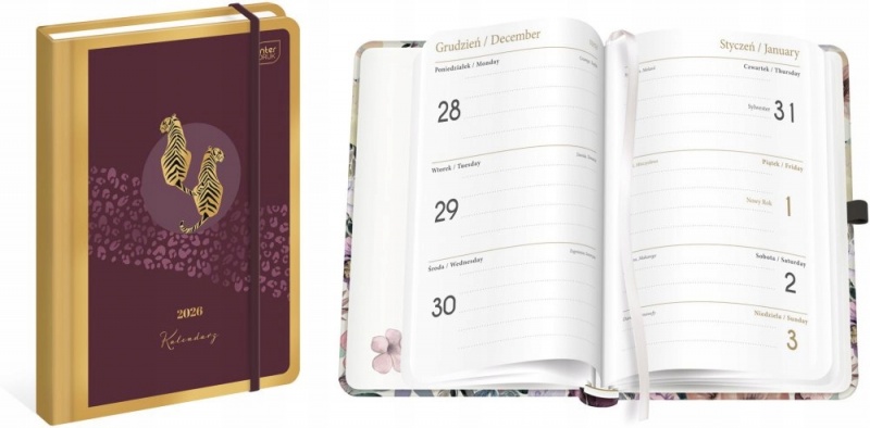 KALENDARZ B6 TYGODNIOWY METALL.SATIN 2026, Tygodniowe, Kalendarze