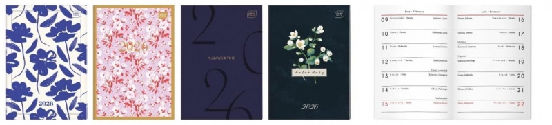 Kalendarz w miękkiej oprawie, z modną grafiką na okładce.