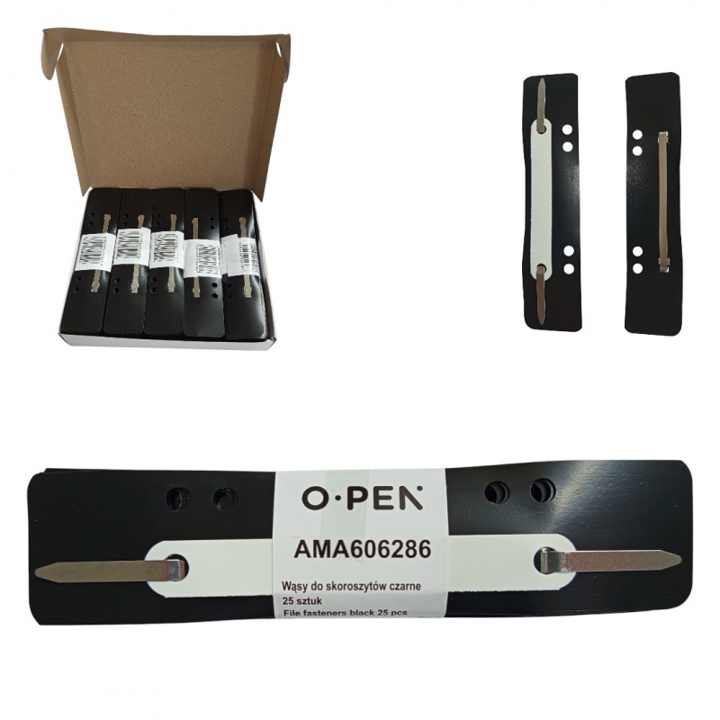 WĄSY DO SKOROSZYTÓW CZARNE/25szt/ Solidne i wygodne w użyciu wąsy do skoroszytów biurowych w kolorze czarnym. Idealne do przechowywania i...