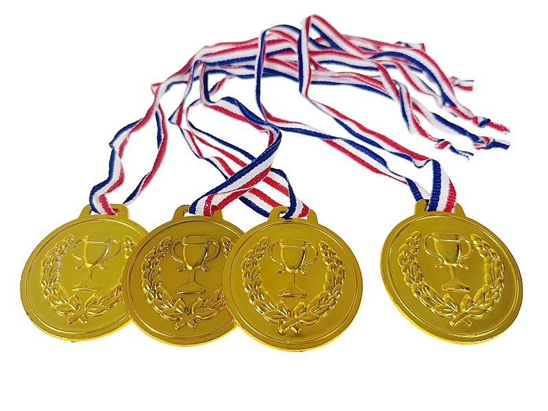 ZESTAW MEDALI medal o śr. 5,5cm, zestaw 4 sztuk.   Ostrzeżenia! Produkt odpowiedni dla dzieci w wieku powyżej 3 roku życia....