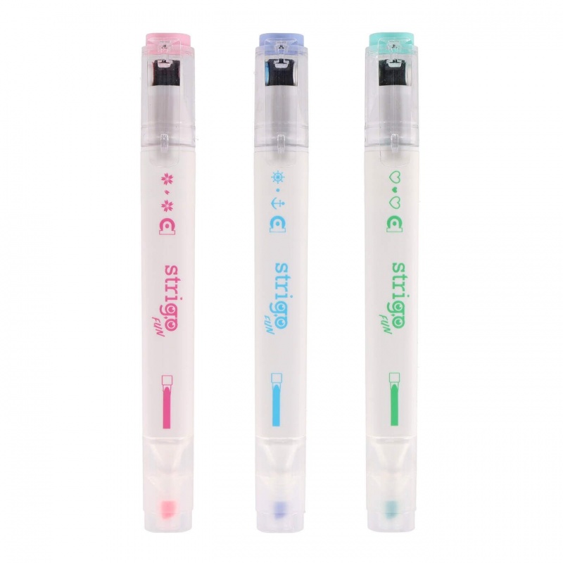 STRIGO ZAKREŚLACZE I STEMPELKI NA ROLCE 2W1 3szt., Zakreślacze, Art. do pisania i korygowania